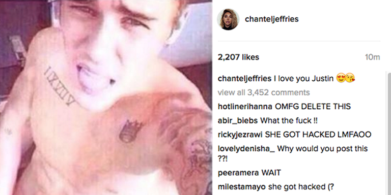 Bieber's ex Chantel Jeffries had her Instagram hacked and a ~saucy~ nude photo popped up. But it's not the real deal.